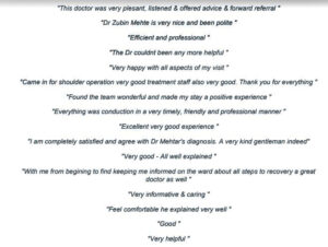 EXCELLENT Based on 10 reviews Bhumi saini2024-01-23Trustindex verifies that the original source of the review is Google. very professional and kind Gurdarshan Gill2024-01-10Trustindex verifies that the original source of the review is Google. Nice and very kind doctor. He listen all problems of patients very politely and guide patient very nicely Suresh Jokta2023-12-18Trustindex verifies that the original source of the review is Google. It my great experience, dr listen problem carefully and try to understand problem properly, then only strat treatment. Ravinder singh Rawat2023-12-15Trustindex verifies that the original source of the review is Google. Dr Zubin Mehta is a very good doctor . He is knowledgeable experienced and humble. He makes patient comfortable during treatment . Joshy Joshy2023-12-15Trustindex verifies that the original source of the review is Google. I had a consultation with Dr Zubin mehta for my lower back pain. Very friendly, ethical and knowledgeable. He assessed me, prescribed medication and MRI. Next day, with all my results he saw me and gave a detailed explanation of my condition and referred me to a competent physio. I would highly recommend him. Vimal Nath2023-12-11Trustindex verifies that the original source of the review is Google. Superb care Pihu Ritu2023-12-11Trustindex verifies that the original source of the review is Google. Thanku Dr Jubin Mehta Best ortho doctor in Fortis medcenter Chandigarh must visit Anju Suryavnshi2023-12-08Trustindex verifies that the original source of the review is Google. Best ortho doctor must visit in Fortis medcenter Chandigarh